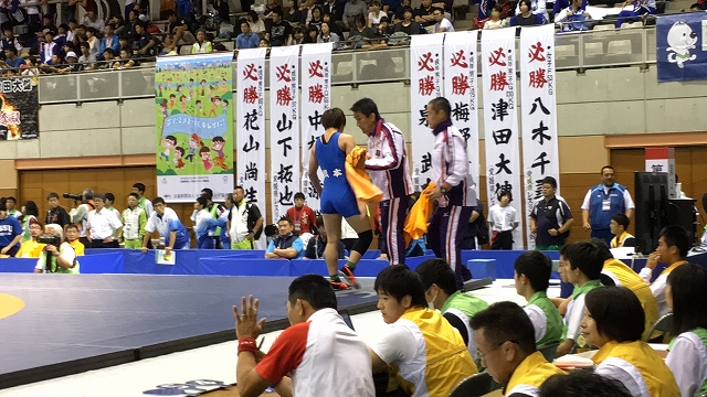 愛媛国体に行ってきました。 投稿日時 : 2017/10/11 HRBT2016 カテゴリ:部活動 10月6日(金)より愛媛県宇和島市で行われた「愛顔つなぐ愛媛国体」に行ってきました。女子53kg級に出場した造園科2年井上実奈梨さんは成年と同じ組み合わせで行われるなか、1回戦で環太平洋大学の4年生を破ると、勢いも乗り2回戦、3回戦を突破しました。 準々決勝では大学チャンピオンに敗れたものの、成年と一緒であり、2階級上の選手のなかで良く健闘しました。価値ある5位入賞となりました。これを励みにぜひ全国チャンピオンを目指して日々精進していきたいと思います。応援していただいた皆様本当にありがとうございました。果敢に攻める井上さん声援を送る矢山監督井上さん勝利した瞬間勝利選手井上さん賞状を持って写る井上さん井上さんを筆頭に毎日、レスリング部員は練習を一生懸命頑張っています。今後も頑張ってください。応援しています。B04