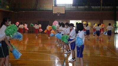 リーダーの指示のもと、1年生も一生懸命練習しています。