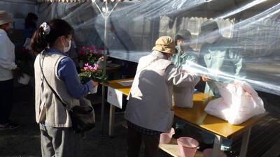 草花専攻は注文してもらっていた近隣の小学校、中学校の花壇に植えてもらう花苗を分けていきました。