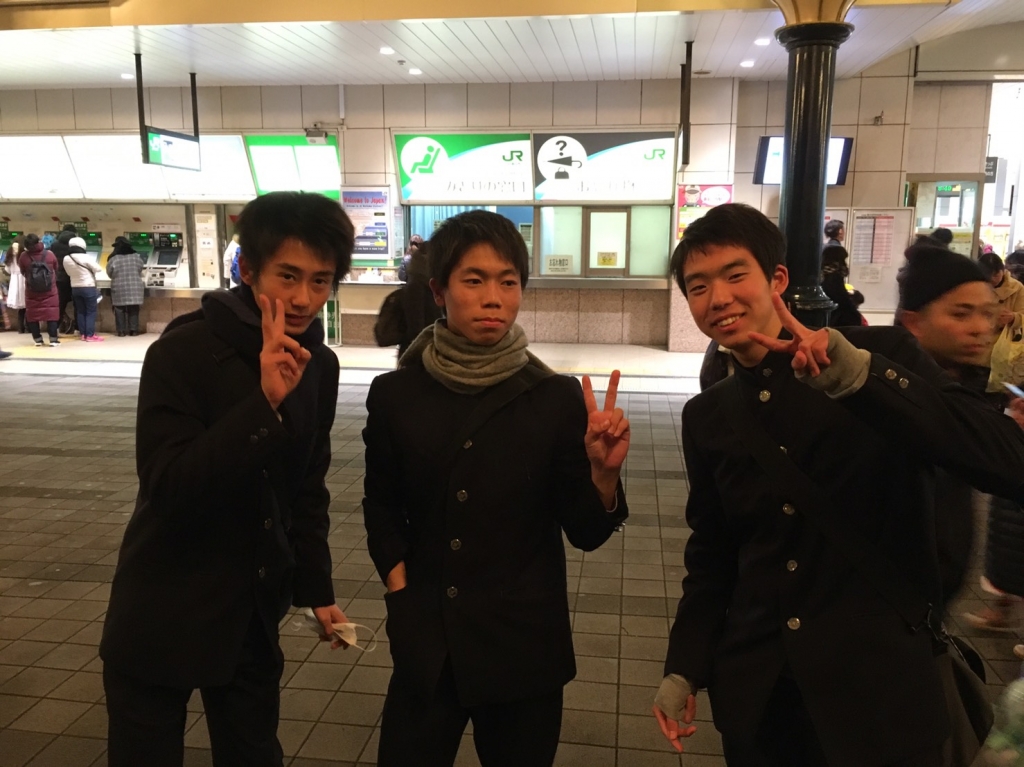 嬉しい報告 投稿日時 : 2017/12/17 学校サイト管理者 北稜高校商業科を卒業後、東京で学んでいる卒業生と熊本で学びちょうどこの時期に東京に来ていた卒業生が一緒に、修学旅行先を訪ねてくれました。それも、「内定をいただいた」という嬉しいお知らせを持って。ひとりは声優さんが日本で一番多く所属しているといわれているプロダクションへ、もう一人は、美容室で働くことが決まったそうです。内定おめでとう。 ふたりとも、とっても良い表情をしていますね。これからも頑張ってくださいね。ずっと応援していますよ。