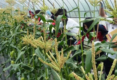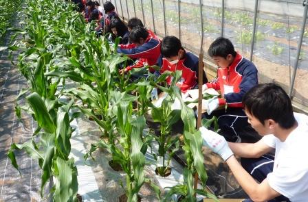 トウモロコシの栽培 投稿日時 : 2015/06/05 HRBT2016 生物活用の授業で4月から栽培してきたトウモロコシが収穫の時を迎えました。4月 生育調査 5月13日 受粉5月27日 もうすぐ収穫(欲張り2個取り) 6月4日 収穫J01