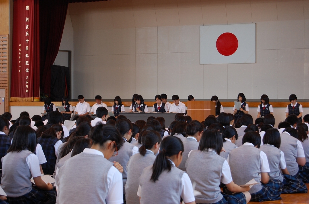 平成27年度生徒総会 投稿日時 : 2015/06/01 学校サイト管理者 本日7限目 生徒総会が行われました。生徒会役員より平成26年度の生徒会行事や決算報告、平成27年度の生徒会予算案等が提案され、承認されました。その後、各係より一年間の反省と今後の課題が述べられました。総会での内容を北稜高校のさらなる発展に繋げてほしいと思います。 A01