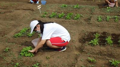 除草をした後にチンゲンサイやダイコン、タカナなど間引きをして、ベビーリーフとして食卓にのせます。