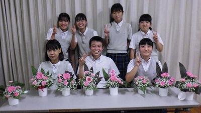 2年生は来年に向けて、初めてフラワーアレンジに取り組みました。
