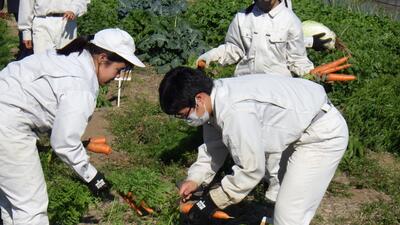 ダイコンやキャベツなど運搬車に乗せて行く楽しい実習です。