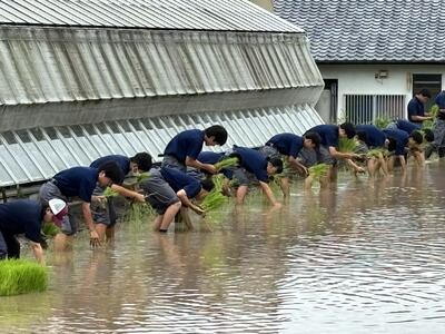 園芸科1年生の総合実習で、本校の水田に田植えを実施しました。