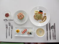 12月20日(土)に家政科3年の調理選択者の内、希望者が食物調理技術検定1級(供応食)に挑戦しました。審査は外部から検定委員の先生方に来ていただきました。