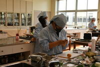 希望者はこれから食物調理技術検定1級を受検します。本番に向け、練習を繰り返し行います。