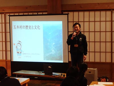 昼食の後は、「五木村歴史文化交流館 ヒストリアテラス五木谷」館長の福原さんより、五木村の歴史や生活文化のお話を聞きました。