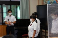 同窓会岡本理事長様同窓会役員様期別代議員の椎葉さんより新入会者代表あいさつ予行(卒業証書授与)予行(退場)