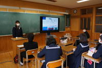 五木村保健福祉課から森田佳子さまを講師にお招きし、がん教育講演会を行いました。がんの予防、早期発見、対処法、人間ドック等の検診の必要性を中心に御講話いただき、生徒たちはとても真剣に受講することができていました。森田様、お忙しい中に御講演いただきありがとうございました。
