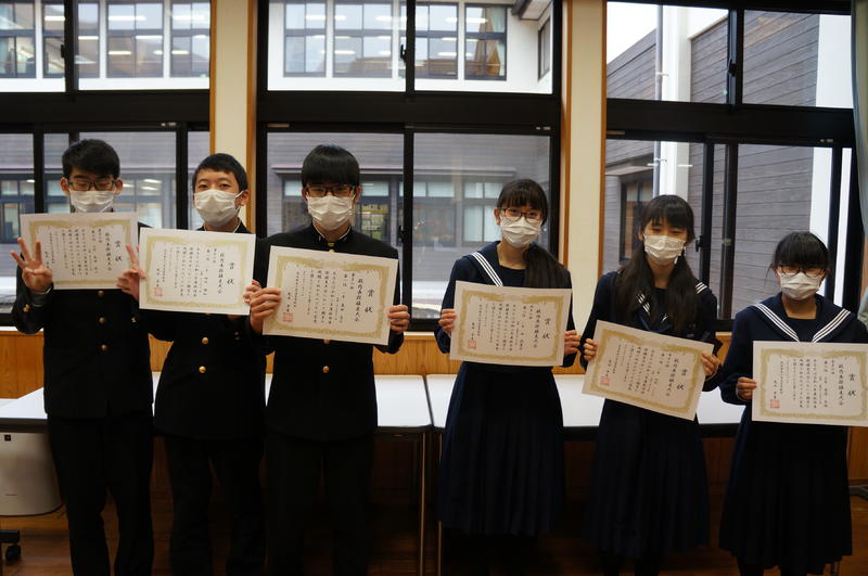特選 1年 尾方さん      入選 1年 渡辺くん     入選 2年 櫻井くん