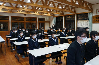 1月31日(金)3年生の学年末考査が終わり、いよいよ3年生は2月から家庭学習期間に入ります。考査終了後のLHRで担任の竹永先生からの諸注意が行われました。3月1日の卒業式に向けて、いよいよ秒読み段階となってきました。これから五木分校も寂しくなってきます。