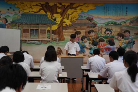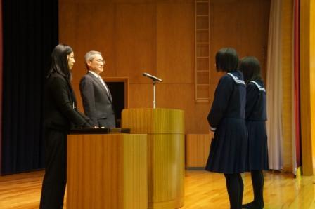新任式で生徒会長からの温かい歓迎の言葉がありました。