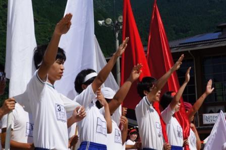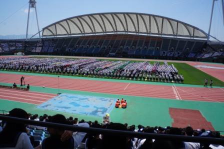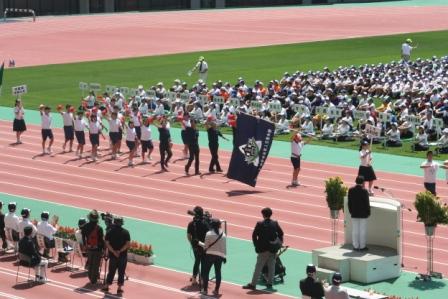 堂々とした入場行進                                                                                                      各応援団長による選手宣誓選手宣誓 カラーガードに入場カラーガード前の緊張の瞬間校長先生より慰労の言葉光永校長先生より労いのお言葉