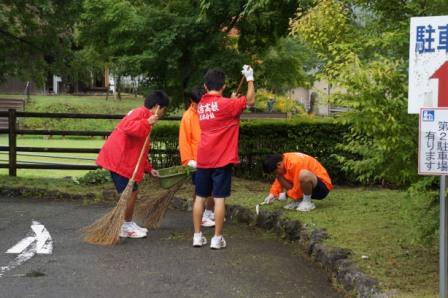 午後1時半から保小中高のPTAの皆さまのご協力と中高生の若い力により、テント設営等を行い運動会の準備が整いました。雨の中、ありがとうございました。