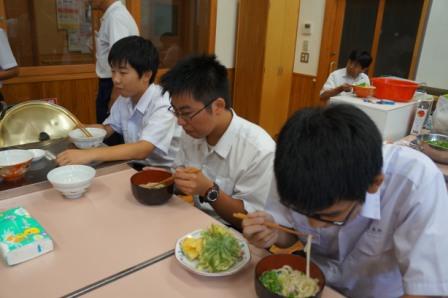4月11日(水)4限目から伝統となった新入生歓迎行事を行いました。まずは、髙村先生作の手の込んだ美味しいうどんでの昼食会。一人3杯のノルマでお腹一杯になっていました。その後部活動紹介を行い、ビーチバレーでは各学年を混ぜ、それに先生方も交えた班を編成し、リーグ戦で試合を行いました。和気あいあいとした雰囲気で、一気に生徒間の距離も縮めることができ目的を達成できたようです。