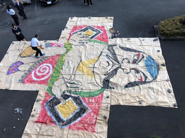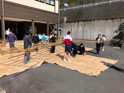 10月30日(水)放課後、文化祭で揚げる大凧づくりです。3年生を中心に頑張ってくれています。