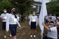 校内放送「訓練火災発生。分校保健室より出火。全員、グランドに避難してください。」