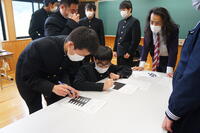 最後は3年生3人が分校代表として、全員の前でデモンストレーションしました。