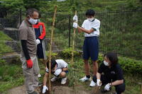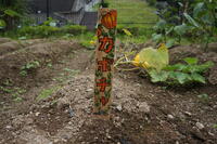 今日の畑では、支柱作成に取り組みました。また、アート部が畑に彩りを加えてくれました。