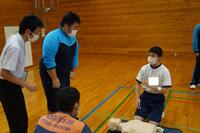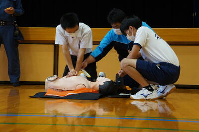 人吉球磨消防組合中央消防署北分署より6名の方々に来校していただき、胸骨圧迫やAEDの使い方などをレクチャーしてもらいました。
