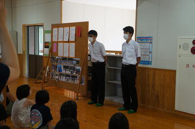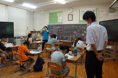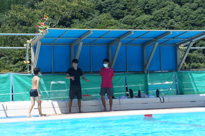 五木分校からは、2人の生徒がボランティアとして、小学生に勉強を教えたり、プールの監視をしたりしています。
