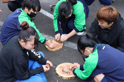 炊き出し班:くまもと林業大学校の方々のご指導の下、本格的な「竹飯ごう体験」「火起こし体験」に挑戦し、さらに「ジビエのBBQ」も行いました。