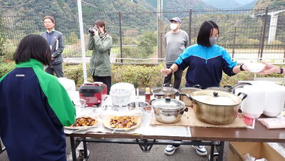 講師として、「くまもと林業大学校」の学生・職員の皆様には炊き出し体験の指導を、本校学校運営協議会委員の辻 篤子様には郷土料理教室の指導をお願いしました。その他、熊本県球磨川流域復興局、高校教育課、株式会社フミダス、分校生徒と職員など、総勢約40名余りの皆様にご参加いただきました。