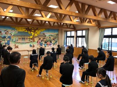 生徒たちは新型コロナウィルス感染症対策による休校のため、一週間ぶりの登校となりました。生徒の頑張りを表彰した後、終業式に入りました。思い起こせば、今年度は平成から令和へ、そして年度末には新型コロナによる休校措置や部活動等の大会中止など、たいへんな一年となりました。校長先生からの式辞の中で、「通常の生活の大事さ、普通であることの尊さ」を感じてほしい、またピンチをチャンスと捉えて、できた時間を有効に使ってほしいと話されました。休みが長くなり疲れている様子も見受けられましたが、この春休み新学期に向けて、校長先生や担任の先生のお話を思い出し準備を行ってください。令和2年が素晴らしい年となりますように!