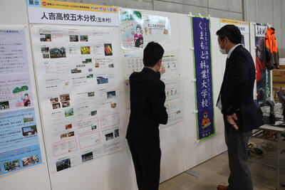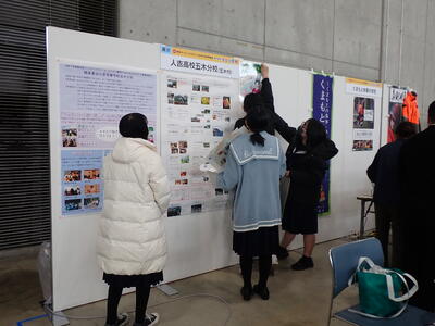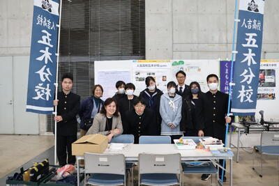 県立高校全50校が日頃の取組の成果を発表する第4回KSH全体発表会「県立高校 学びの祭典」がグランメッセで開催され、8名の生徒が参加しました。多くの来場者があり、様々な方々に五木分校プロジェクトで行っている、「五木分校クエスト」や「五木村地域巡検」の様子、県内3校の分校で連携して行っている「分校同盟」での取組など分校の活動について紹介しました。生徒たちも他校の取組を見ることができ、刺激を受けている様子でした。