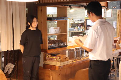 白滝公園前のおしゃれなカフェでお話を聞くことができ、貴重な研修となりました。