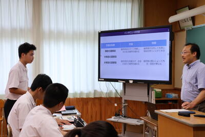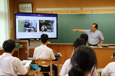 9月3日(水)には、東大先端研の減災まちづくり分野特任講師 大津山 堅介先生にお越しいただき、1・2年生を対象に「インタビューの手法を学ぼう」と題して講話を頂きました。「インタビューの方法」では、構造化面接法と非構造化面接法の仕組みを学び、その後、半構造化面接法に挑戦ました。また、「どんな人に何を質問したいですか」では、どんな人に何を質問すると良いかを質問を考えながら受講しました。