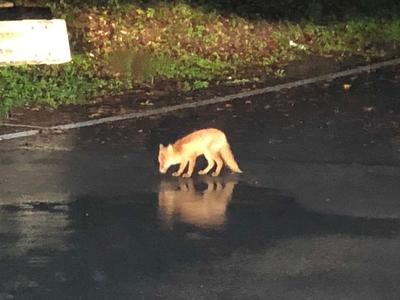 昨夕(6月30日)雨の中、五木分校跡地の五木源(ごきげん)パークへ行ったところ、きつねがいました。始めは犬かたぬきかとも思いましたが、どうもきつねのようでした。一生懸命エサを食べているようで逃げる気配もありませんでした。かわいいですね!
