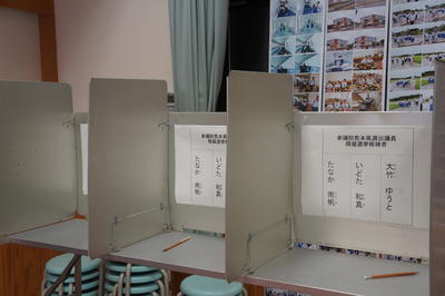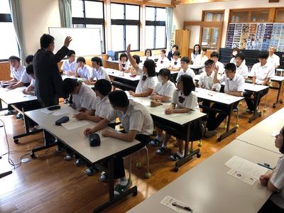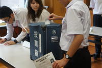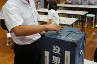 本日、6限目に「政治的教養に係る出前講座」として、五木村の選挙管理委員会の方2名を講師としてお迎えし、選挙の意義や重要性、具体的な仕組みについてお話いただいた後、投票の手順を教えてもらい実際の投票所を再現したもので模擬投票等を体験しました。