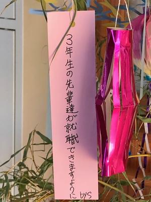 生徒昇降口のところに笹を設置し七夕飾りをしておりますので紹介します。みんなの願いが叶いますように。今夜は天気も良くなんとか天の川が見れそうではありますが、五木村の空は山が迫っており狭いので見えるかどうか心配です。しかし、日ごろから空気は澄み切り真っ暗ですので星はよく見えます!