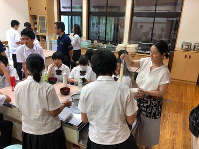 7月18日(木)、一学期「総合的な学習(探究)の時間」で行ってきた農作物づくりで収穫した野菜を調理し、みんなでいただく収穫祭を行いました。また、午後からは当初川辺川でのカヤック体験を予定していましたが、雨により増水し危険と判断しゴールボールに変更し、体育館で実施しました。ハラミチームが見事優勝しました。