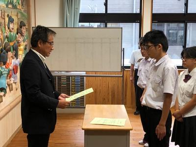7月19日(金)終業式に先だって生徒会役員交代式及び任命式を行いました。一年間内谷会長を中心に、学校の顔として、また行事行事の企画運営に中心となって取り組み成功に導いてくれました。お疲れさまでした。新たに高田新会長を任命し、新しい生徒会がスタートしました。