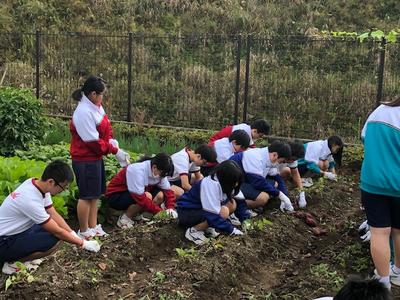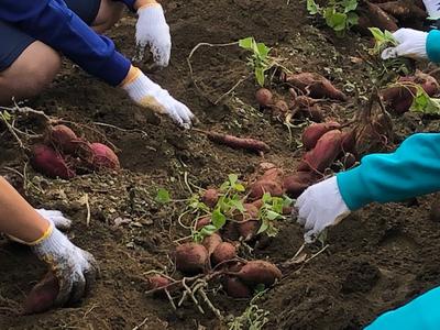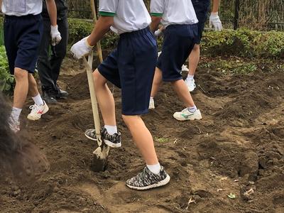 総合的な学習の時間(総合的な探究の時間)に育ててきた芋を掘りました。生徒たちは、徐々に芋掘りの楽しさを知り、最後まで掘って芋を見つけていました。最後は、芋を生徒たちで分けて、お土産に持って帰りました。きんとんにもしていただき、美味しくいただきました。