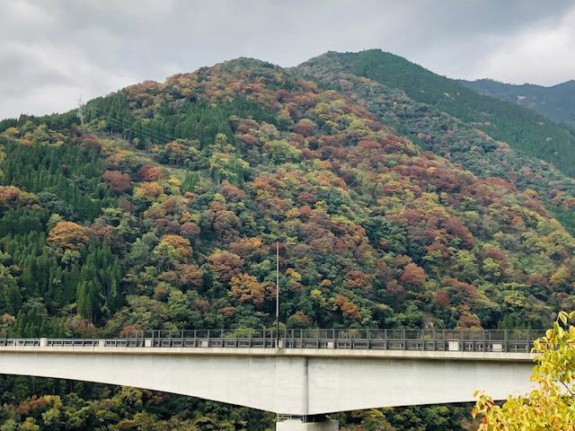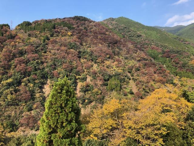 11月13日(水)五木村の紅葉はさらに進んでいます。今日の学校からの枡形山周辺の様子をご紹介します。
