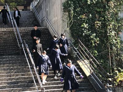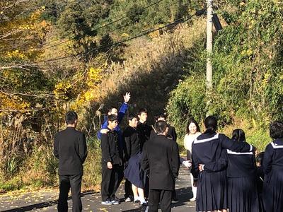 11月28日(木)6限目「総合的な学習の時間」(2・3年)、「総合的な探究の時間」(1年)に、五木村フットパスを行いました。普段なかなか通ることのない道を歩きながら、五木村の歴史や季節によってできるもの等、先生方から詳しく説明を受けていました。500年近くになるかという銀杏の木など見頃満載で、五木村に対しさらに関心が高まる機会、時間となりました。