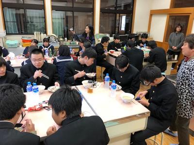 その後は、保護者の方々が作られた豚汁を食べながら、心もお腹もいっぱいに長距離走の疲れを癒やすことができました。保護者の皆様方、ごちそうさまでした。