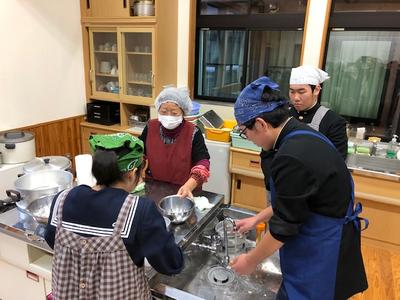 12月17日(火)3・4限目に米粉インストラクターを招へいし、米粉料理講習会を行っています。米粉を使って肉まんと中華風コーンスープをを作ります。3名のインストラクターにご指導いただいています。美味しそうな肉まんができそうです。