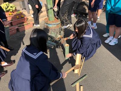 明日12月20日(金)6限目門松作りを行います。そのための準備として、竹を準備しています。天気も良さそうで立派な門松を作り、新年を迎えたいと思います。