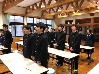 終業式での校歌の様子