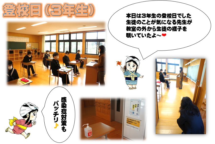 五木分校は学校再開をしましたが、世の中はまだまだ予断を許さない状況です。それぞれが意識しながら、自分自身や周りの大切な人を守れる行動を取っていくことが、当たり前の日常に戻れる第一歩だと信じています。新年度が素晴らしい年になることを祈って、予防頑張ろう。もちろん、学校生活も頑張りましょう。