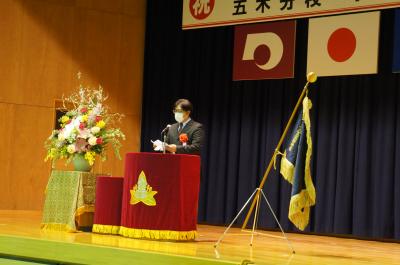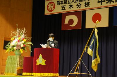 今日を境に、それぞれが新しい自分の道を歩み始めます。どのような道に分かれようとも、皆さんは五木分校の卒業生であります。一緒に学んだ仲間を忘れず、友情を持ち続けてください。そして、自信を持って、前を向いて歩いて行ってください。