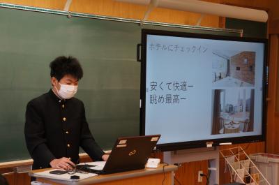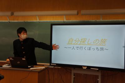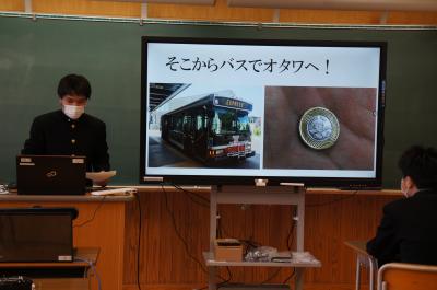 2年生地理Bの時間に「ヴァーチャル海外旅行」と題し、自分の行きたい旅行先を調べ、それをICTを活用してまとめ、発表するという授業が展開されました。