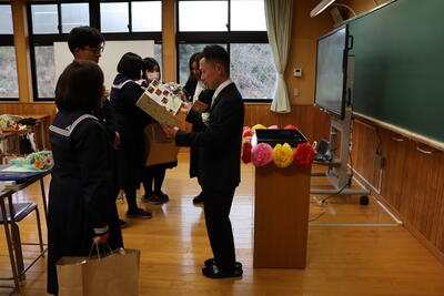 高校の卒業式では、中々見ることのない光景だと思います。これも分校ならではです。