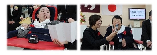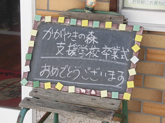 校長先生から、小学部・高等部合わせて4人の児童生徒一人一人に卒業証書が手渡され、みんな笑顔で受け取ることができました。在校生からは、卒業生一人一人に向けた送る言葉や歌、卒業生からもお別れの言葉として、思い出や歌の発表がありました。とても心温まる卒業式でした。